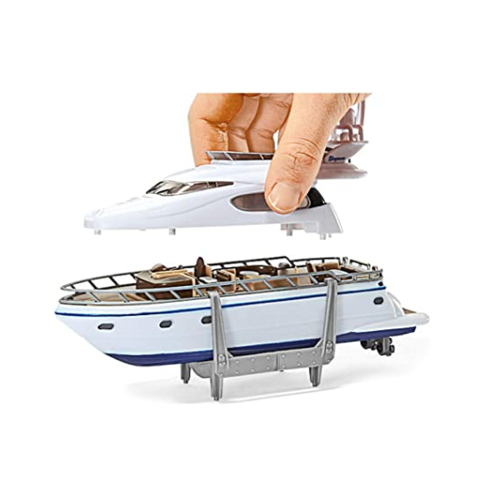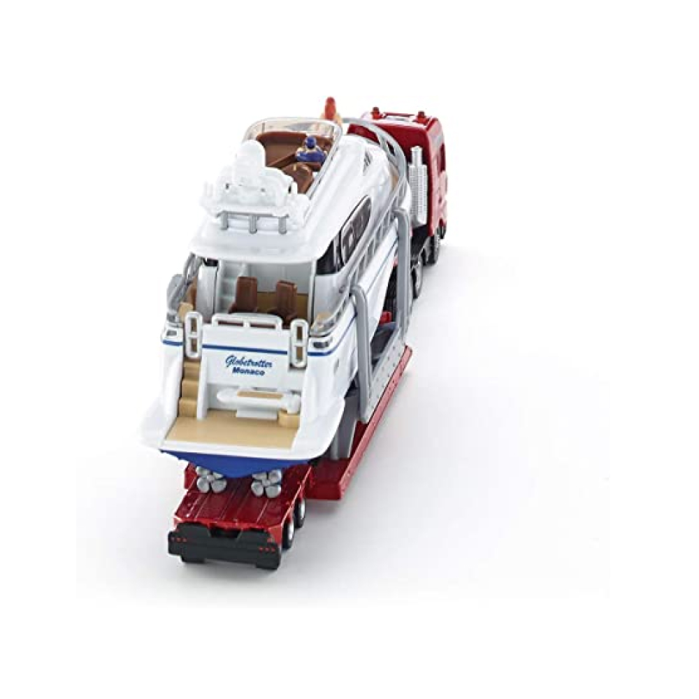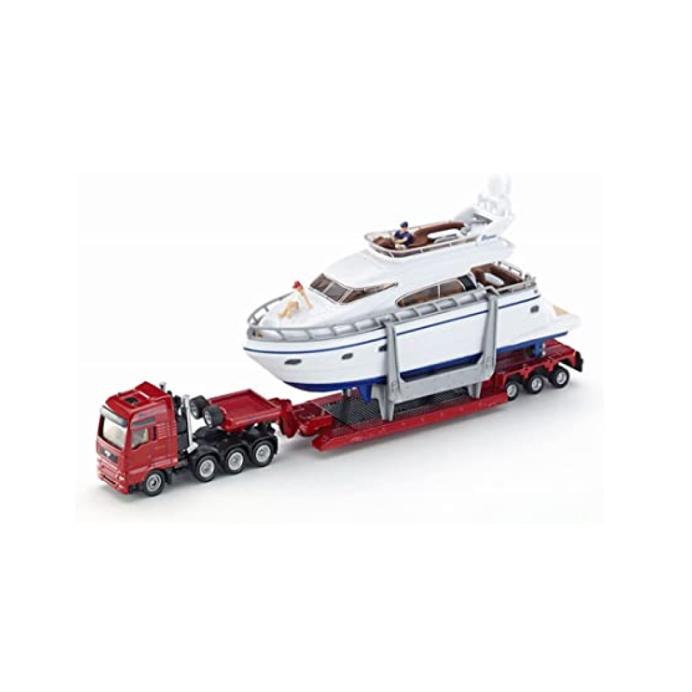 Detailed toy model of a heavy load transporter with yacht, For play and collecting