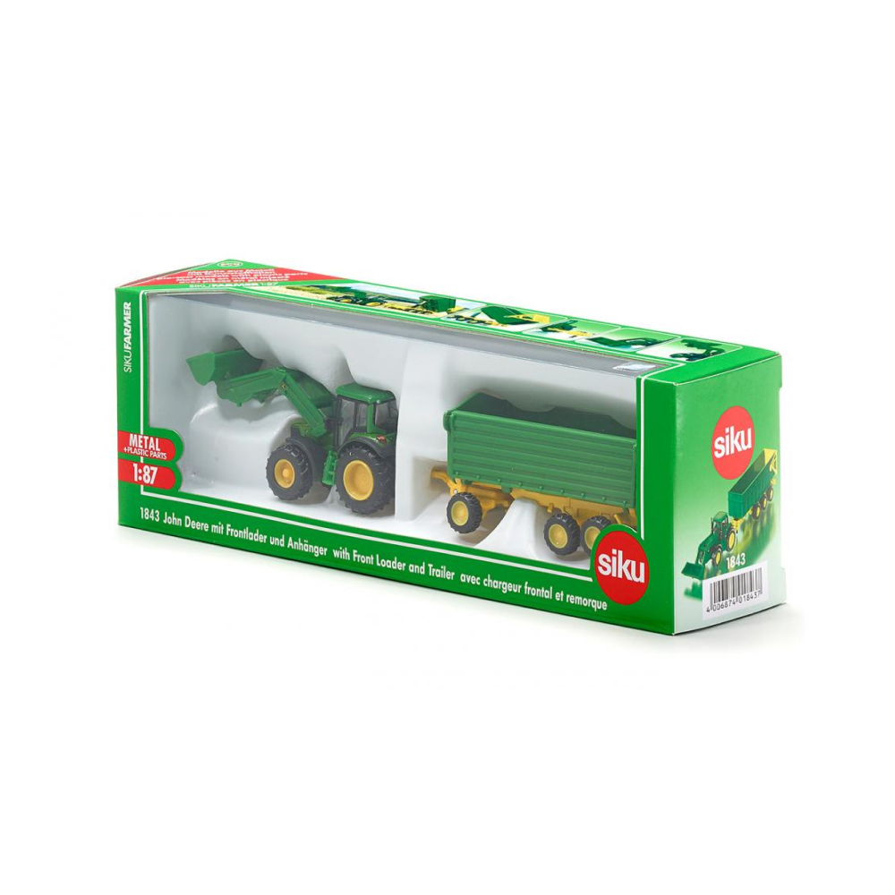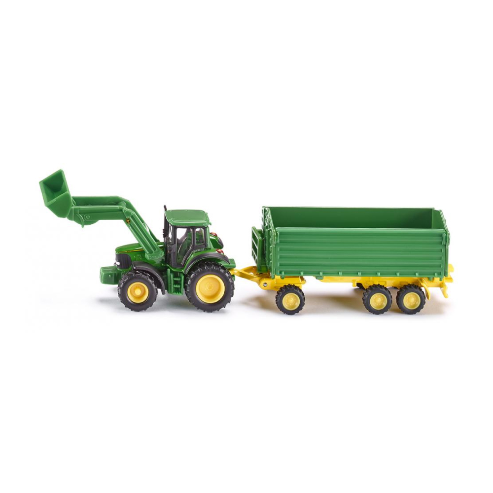 Top tractor in HO format with powerful three-axle tipper trailer. True-to-scale original wheel rims with rubber tracks. Removable cover, front loader and trailer decoupler. The model is complemented with an all-new, highly detailed front loader with tipper. The Krampe three-axle tipper is almost exclusively made of METAL, with the exception of small components. For the 1:87 scale, this represents a new quality standard. The detailed working with many small features in this combination makes this model an attractive part of any kids’ farm, collector’s display or model railway.