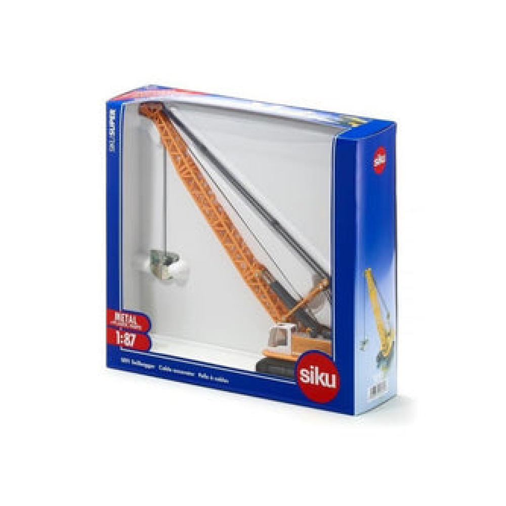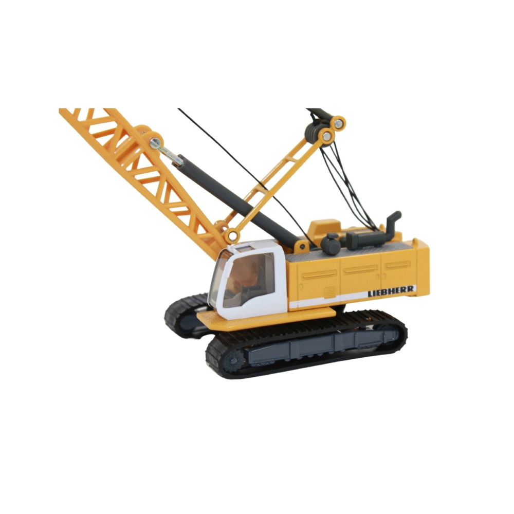 An impressive construction site model made to the child friendly 1:87 scale. Rotating body in die-cast metal. With height-adjustable crane arm. Moving tracks are made of plastic. The crane hook is made of metal and height-adjustable using a swivel lever.