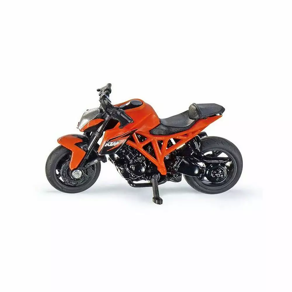 Cruising is so yesterday. The KTM Super Duke must have curves! Use SIKUWORLD to build yourself a landscape of curves, and let the Duke sweep round the bends at a breath-taking lean. As a true-to-original reproduction, this fiery model motorbike is presented in full detail and solid zinc die-cast quality. The Super Duke appears in an attractive colour style, and has a steerable front wheel and a stand which can be folded in and out.
